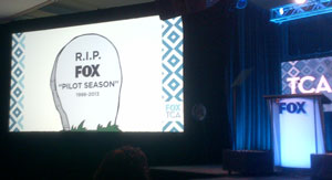 With a drawing on the screen of a FOX headstone marked “R.I.P. Pilot Season 1986-2013,” Reilly noted that the network had been trying to do this for a long time (FOX network was born in 1986). “Many of you heard from Damon Lindelof last week in his HBO session — Damon has had a lot of network television success — and he said something about ‘Cable is far superior to network.’ He said, ‘When you slow down the conveyor belt, the quality goes up.’ And I agree with him, and that’s what we want to do on FOX. This year, officially [and] for the first time, we are going to be bypassing pilot season,” he said. “The broadcast, development and scheduling system was built for a different era. It was built in a three-network monopoly when we had all the talent and all of the audience. It’s highly inefficient,” Reilly complained. He continued: “After the pilot season is over, we screen them and schedule them and announce them in a compressed and crazy, condensed twoweek period. We go to the Upfront [presentation to advertisers in New York City]. Then they have six weeks to get into production and get on the air. Honestly, it’s nothing short of a miracle that the talent is able to produce anything of quality in that environment,” he said.