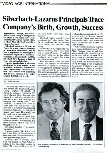 Silverbach spent his entire studio career — spanning more than 30 years — at Fox. In 1977, he formed his own independent television sales company, later recruiting Herb Lazarus — another of the pioneering figures in studio TV sales and the first executive Silverbach hired at Fox — to join with him as partner. The Silverbach-Lazarus Group (SLG) grew into a successful independent TV distribution company, taking on programming from top producers attracted to the company by its business model. Lorimar, Chuck Fries, Metromedia and London Weekend Television are just a few of the major players SLG helped propel into domestic television syndication and international distribution. He retired from SLG in 2010.